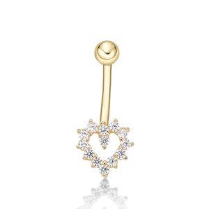 16 Gauge 10MM Cubic Zirconia Heart Belly Ring in 14k Yellow Gold