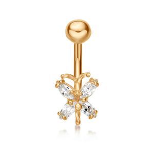 16 Gauge 10k Yellow Gold Belly Ring with Cubic Zirconia Butterfly 12MM Post Length