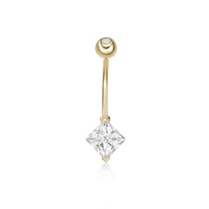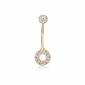 16 Gauge Cubic Zirconia Belly Ring in 10k Yellow Gold