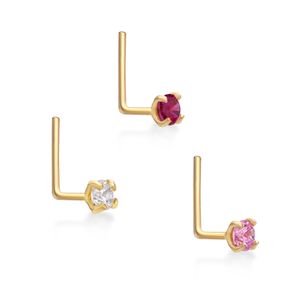 22 Gauge 14K Yellow Gold L-Shaped Nose Ring Set White Pink Red Cubic Zirconia Cubic Zirconia Stones