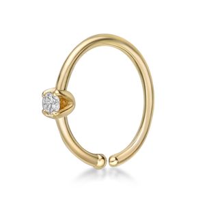 22 Gauge 14K Yellow Gold 4MM Cubic Zirconia 5/16 Hoop Nose Ring