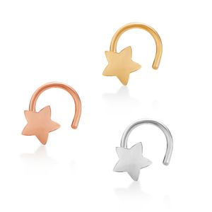 22 Gauge Curved Screw Star Nose Ring Set in 10k Gold 2MM